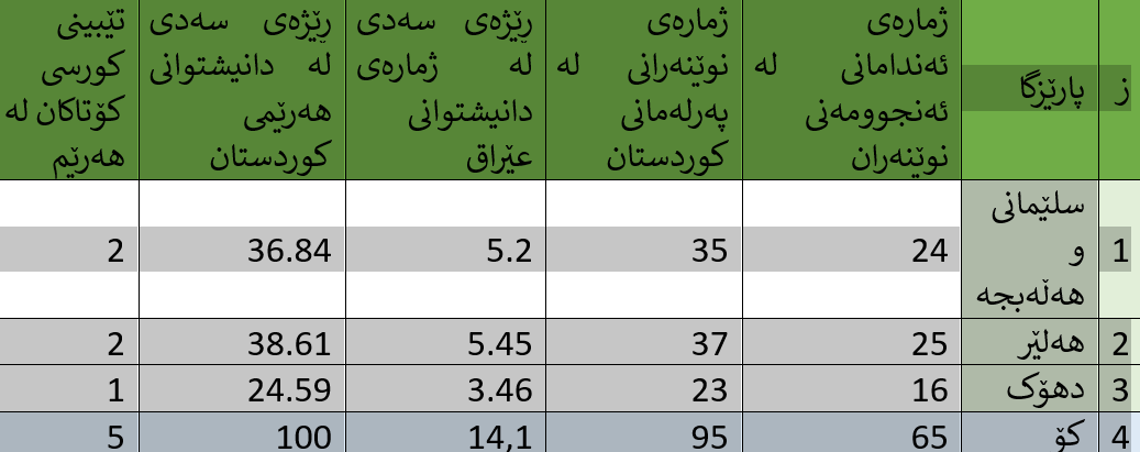 ژمارەیە بەشی (سلێمانی و هەڵەبجە 5.2%) و بەشی (هەولێر 5.45%) و (دهۆک 3.46%).