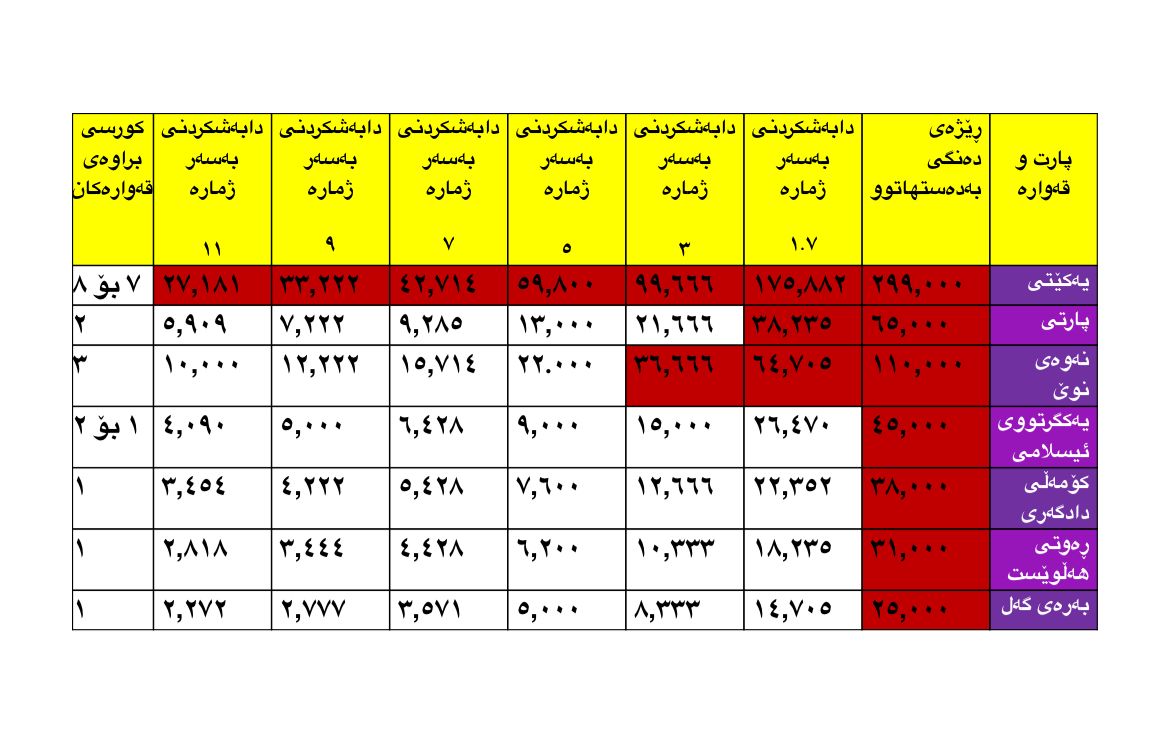 یەکێتیی نیشتیمانی کوردستان (7 ـ 8) کورسی لەگەڵ ماوەیەکی بەهێز - باقی ئەقوا.