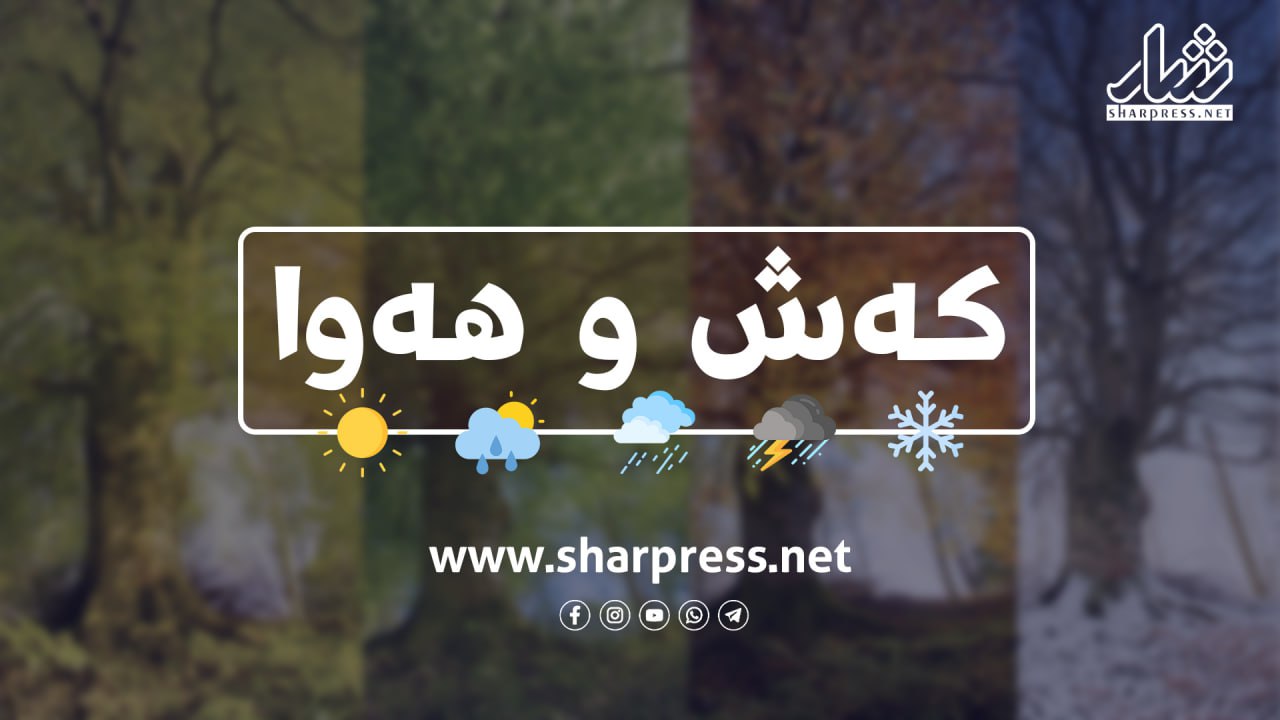 شارەزایەکی کەشناسی ڕایدەگەیەنێت، لەسبەی نیوەڕۆوە بەفربارین دەگاتە سەنتەری بەشێک لەشارەکان و پلەکانی گەرما زۆر نزم دەبنەوە.