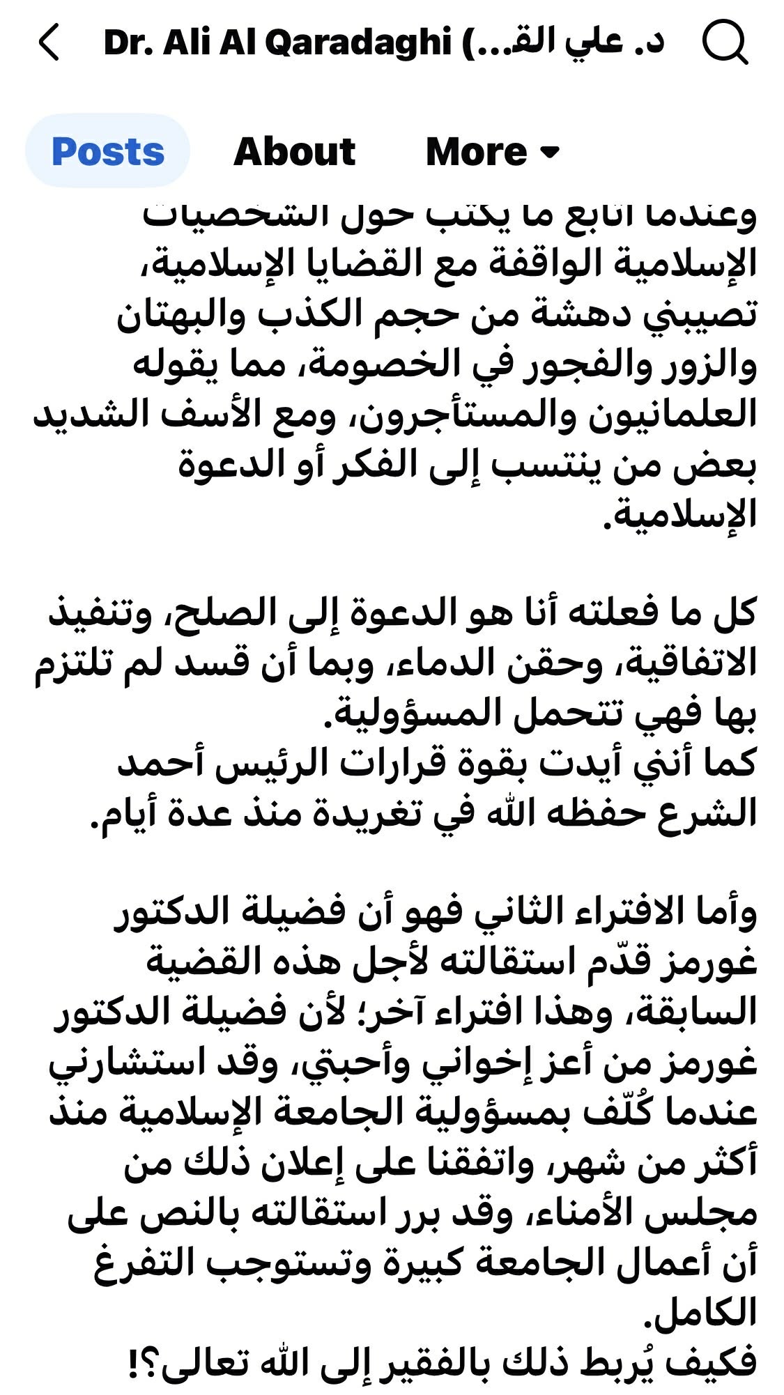 د.عهلى قهرهداغى سەرۆکى یەكێتیی جیهانیی زانایانی موسڵمان لهپهیامێكدا دهڵێت، "بەفەزڵی خودای گەورە تەمەنم بەخزمەتکردنی ئیسلامو عەقیدەکەییو شانازیکردن بەناسنامەی ئیسلامی خۆمو بڵاوکردنەوەی پەیامی ڕاستەقینە بەسەربردوە، بهڵام بهبێ هیچ بهڵگهیهك تۆمهتباركرامو جێگهی سەرسوڕمانە کە مولحیدە توندڕەوەکانی کورد، شانبەشانی ئاڵای تورکیا وێنەکەم دەسوتێنن".