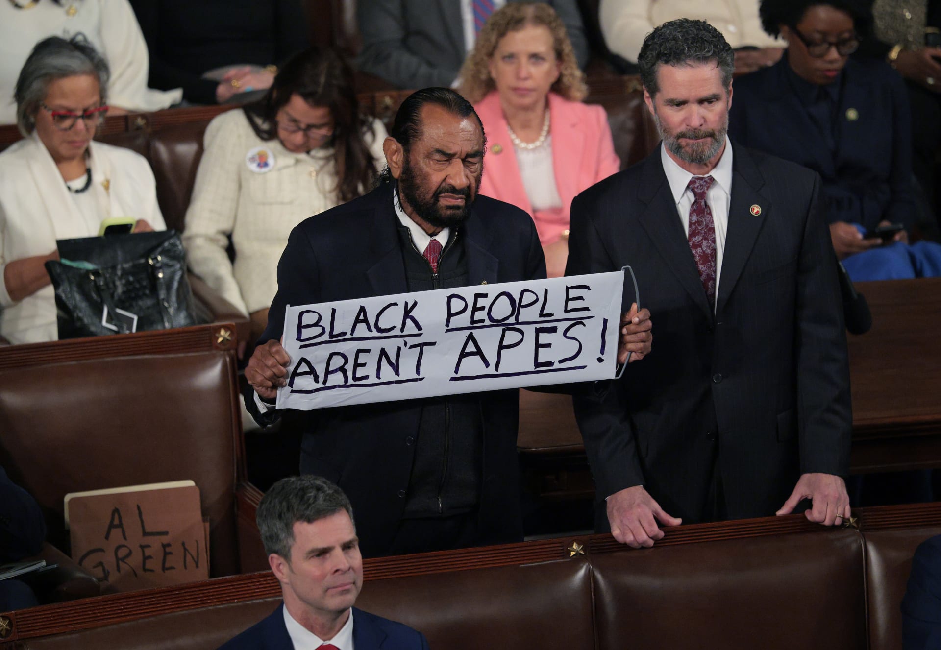 تەنها چەند خولەکێک بەسەر دەستپێکی وتارەکەی دۆناڵد ترەمپدا تێپەڕیبوو، کاتێک (ئاڵ گرین) نوێنەری دیموکراتەکان لەویلایەتی تەکساس، دەستیکرد بەهاوارکردنو ژاوەژاو، ئەوکارەش بوە هۆی پچڕانی وتارەکەی ترەمپ، کە لەوساتەدا باسی سەرکەوتنی کۆمارییەکانی دەکرد لەهەڵبژاردنەکاندا.